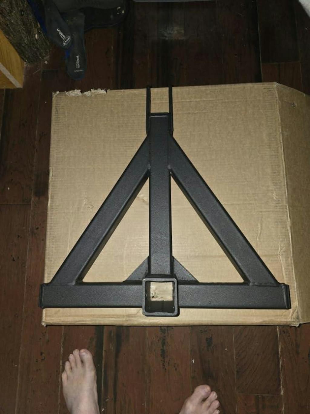 The hitch is engineered with a reinforced triangular structure to ensure maximum stability and added strength during operation. This professional design distributes weight evenly, providing a secure connection for even the most demanding jobs.
