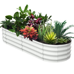 Garvee 183x91x30 cm Galvanized Oval Raised Garden Beds Open Base, Tool-Free Assembly Planter Boxes for Vegetables & Flowers, White