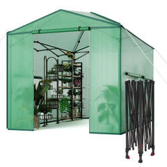 Garvee 6x8 FT Portable Greenhouse – Durable PE Cover Pop-Up Grow Tent with Zippered Doors, Mesh Windows, Easy Assembly for Indoor/Outdoor Plants, Green