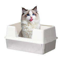 Non-Stick Metal Litter Box: Our metal litter box is crafted from premium stainless steel, offering rust-proof, scratch-resistant, and odorless properties. It is easy to clean and effectively prevents cat litter, dust, and dirt from sticking to the surface.