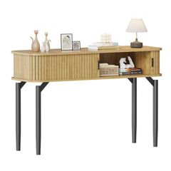 Garvee Fluted Console Table with Storage, Wood Sofa Table with Sliding Door, Entryway Table for Living Room Hallway Foyer, Oak