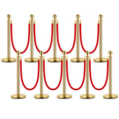 Premium Crowd Control Solution: These stanchion posts with ropes provide a refined way to organize and control crowds.Perfect for upscale events, the red velvet ropes and polished posts add a touch of luxury to any setting.